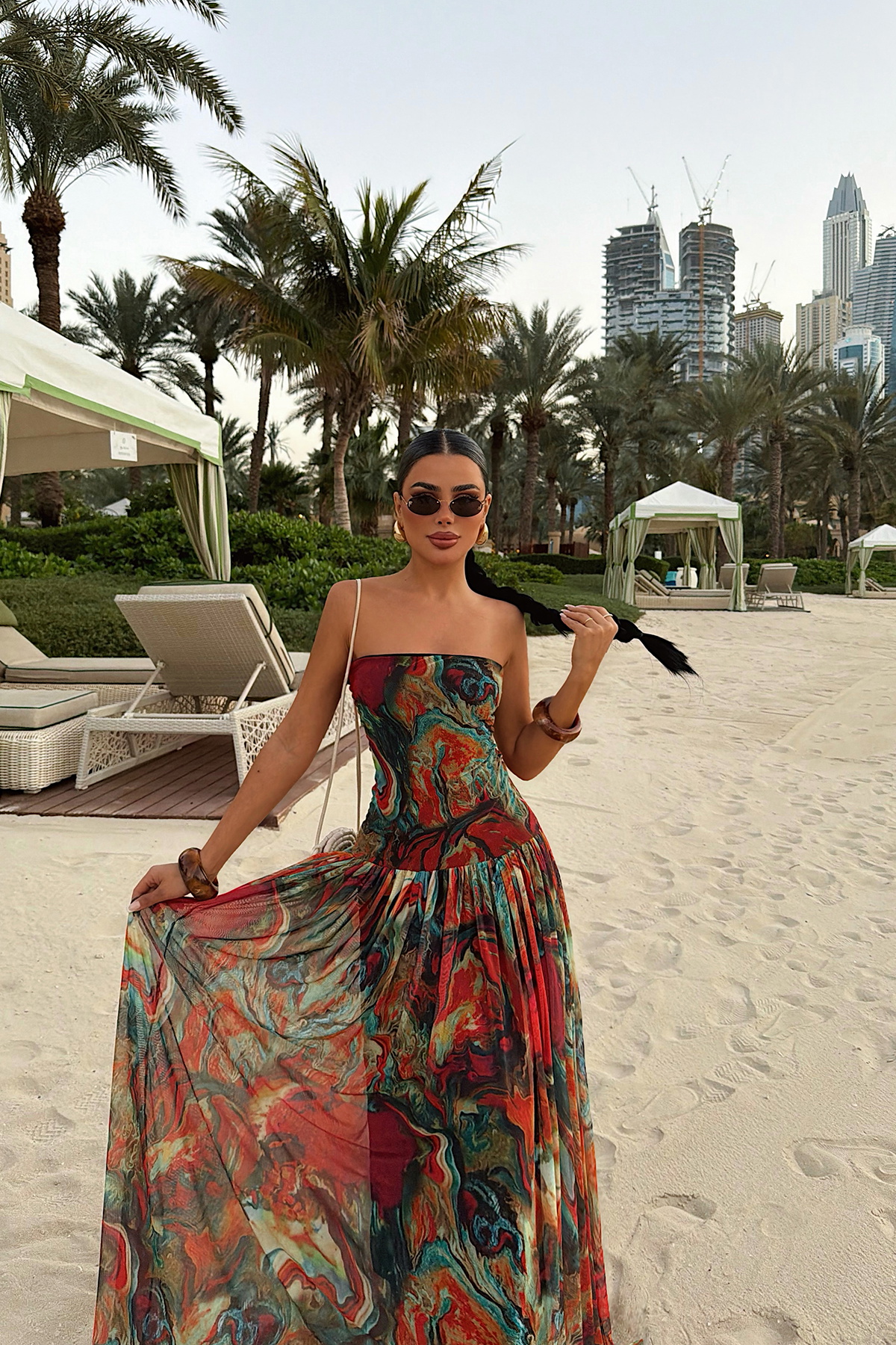 Batik Desen Askılı Uzun Elbise ATE-4963