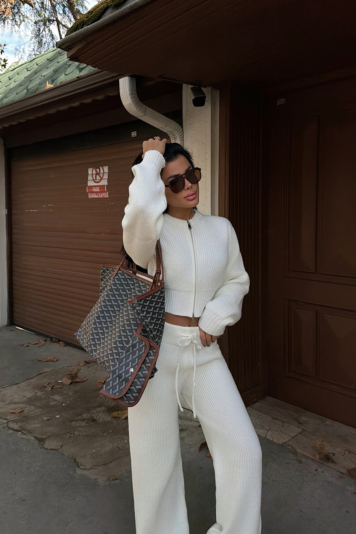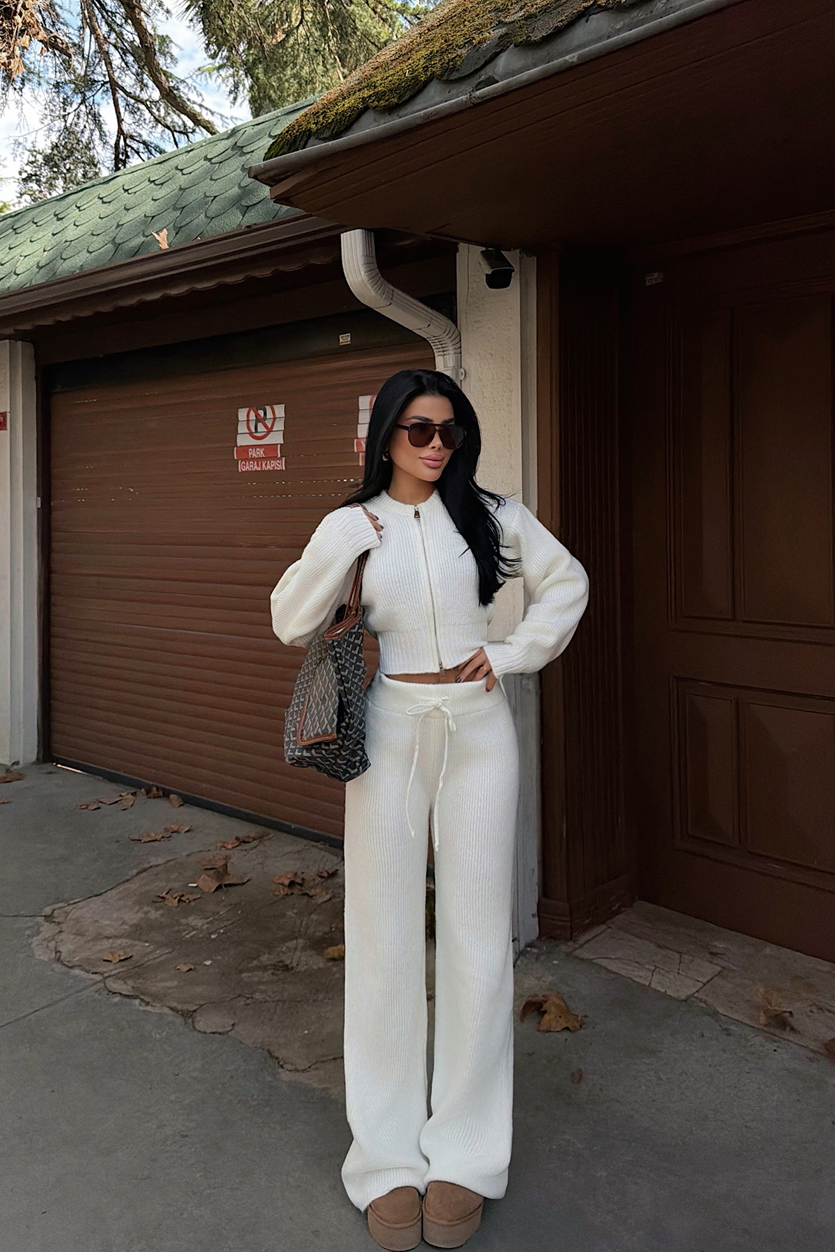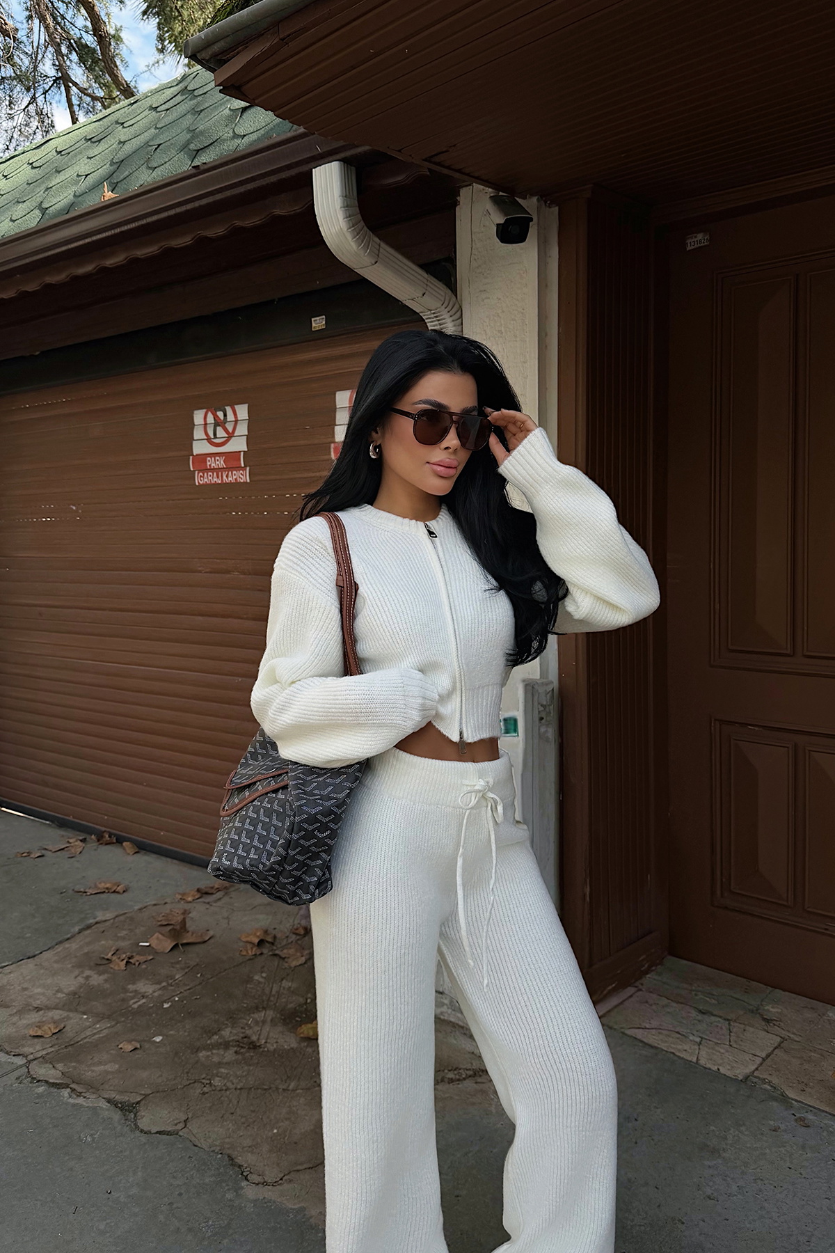 Beyaz Zaria Triko Takım – Saf & Zarif Bütünlük