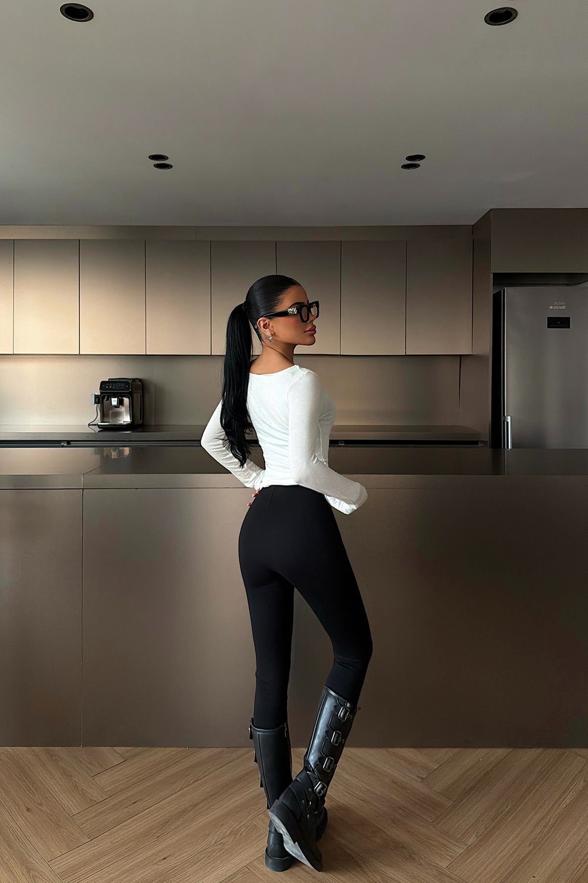 Yarı transparan yapısı ve vücuda oturan formuyla öne çıkan uzun kollu üst, sade ve modern bir görünüm sunar. İnce dokusu sayesinde hafif bir duruş sağlarken, minimal tasarımıyla günlük kombinlerden şık görünümlere kadar kolayca uyum sağlar.
