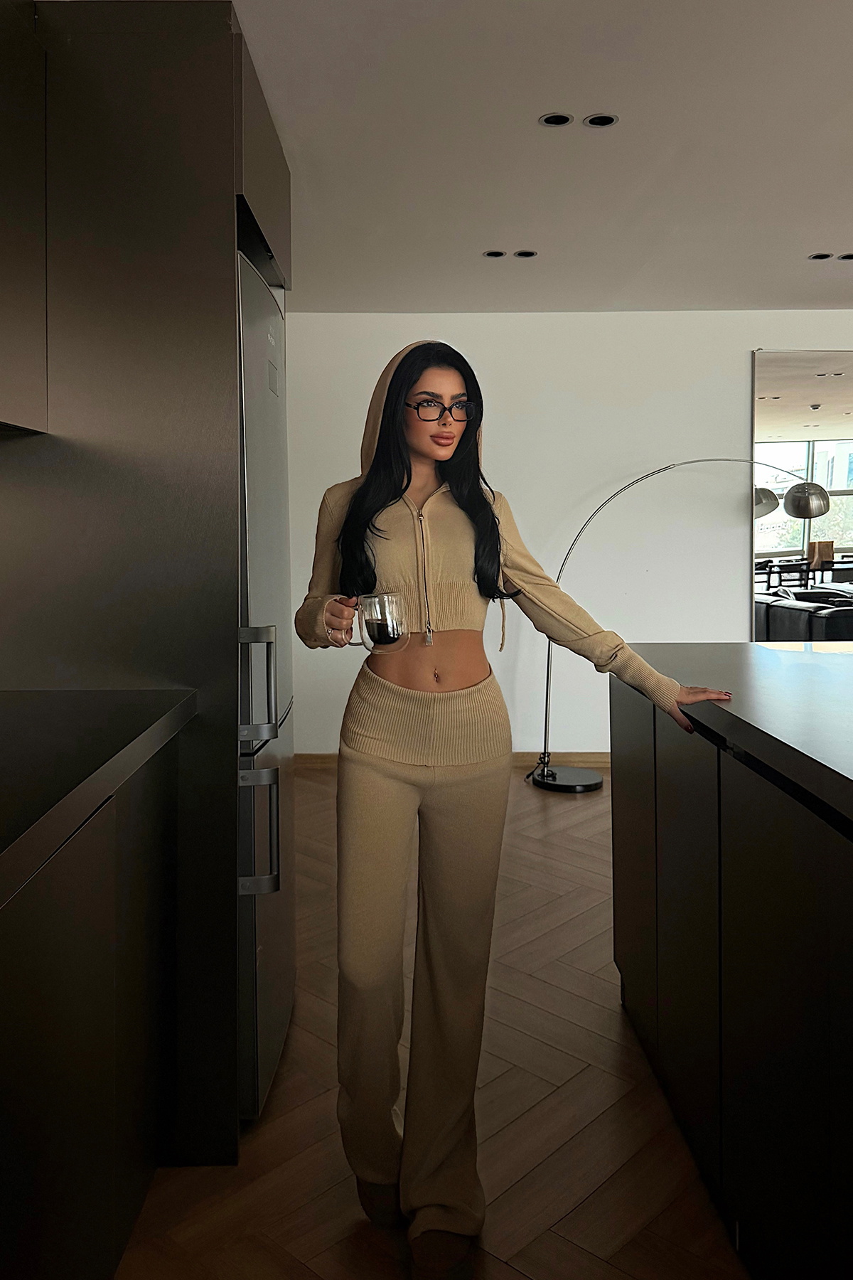 Günlük hayatın temposunda rahatlığı elden bırakmadan tarzından ödün vermek istemeyenler için tasarlanmış olan Camel Kahve Fermuarlı Triko Takım; koyu tonlu rengi ve fonksiyonel fermuar detayıyla hem ev rahatlığı hem şehir stili için mükemmel.