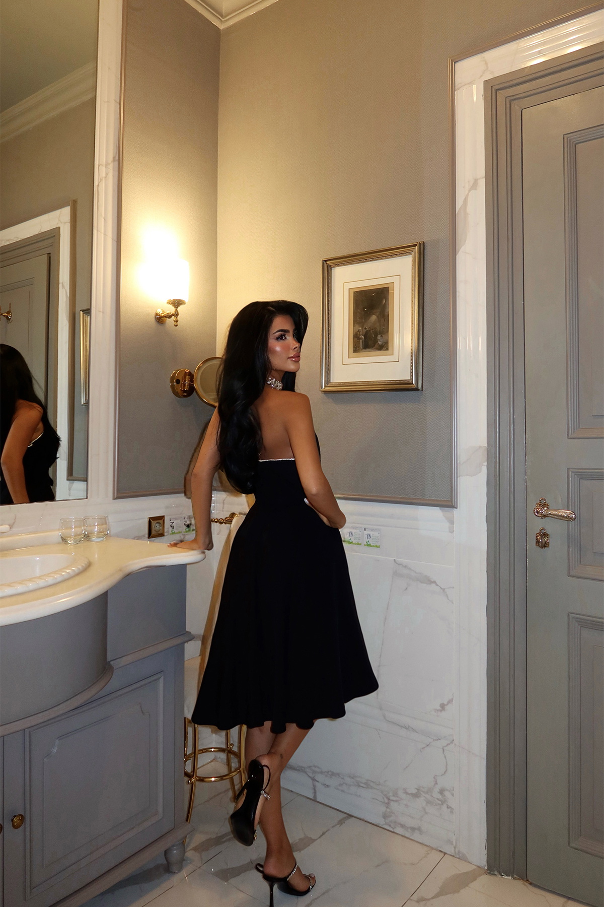 Siyah Fiyonk Detay Straplez Elbise ATE-3905